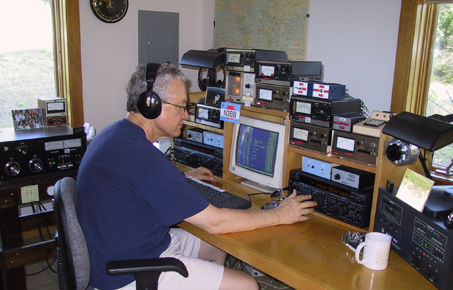 The N3BB station is located in our guest house about 30 meters behind our home. The shack is in a room approximately 8 meters by 4 meters, with continuous windows around three sides. Operators can see several of the towers from the windows.